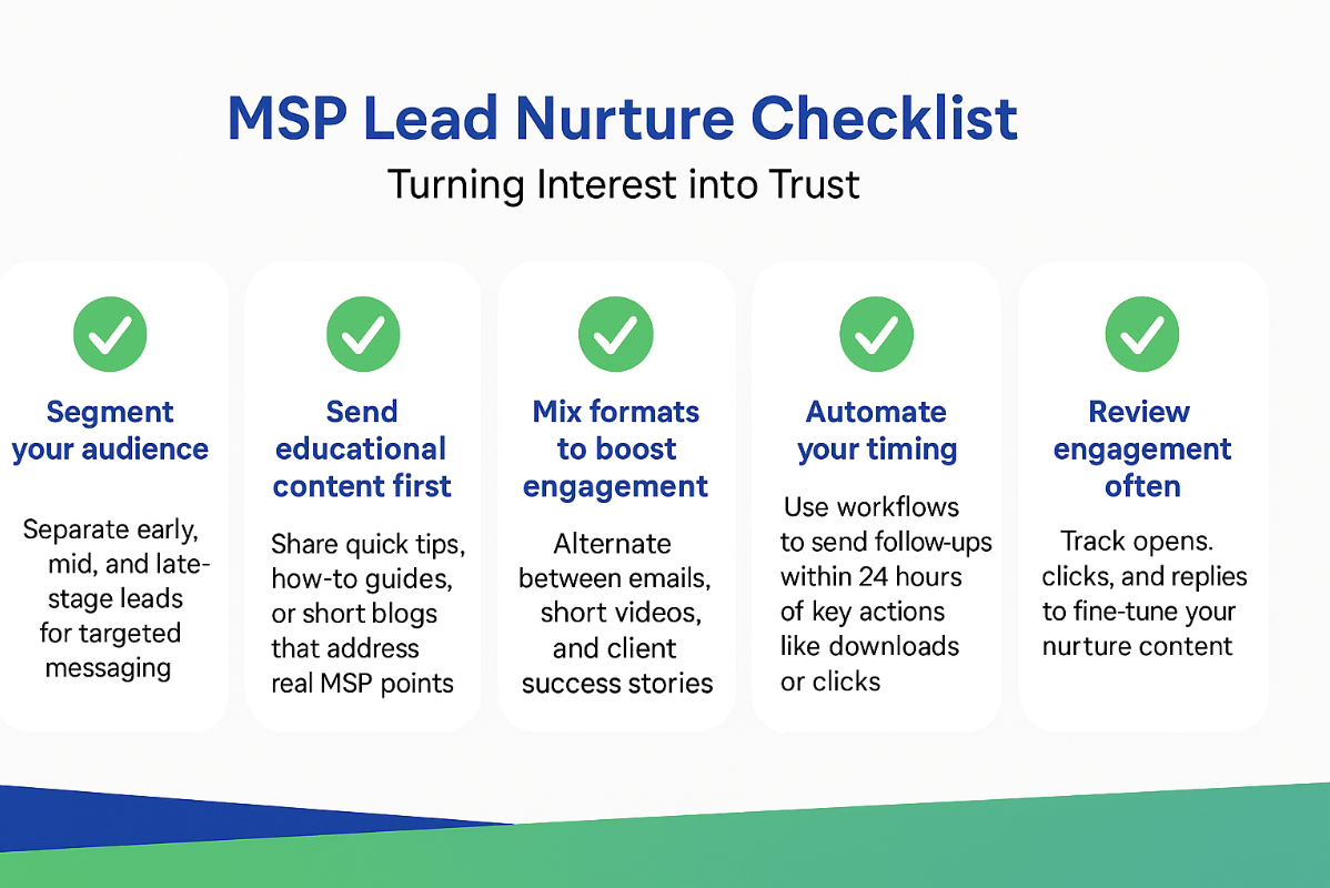 - Mid-funnel leads: use-case stories, checklists, or short videos showing how your MSP keeps systems stable